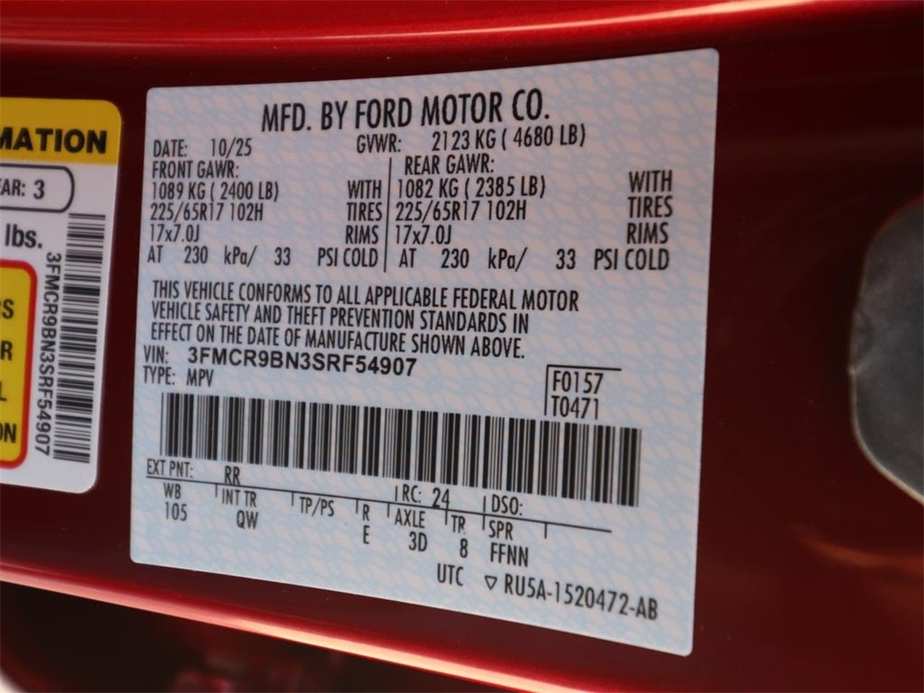 Ruby Red Metallic Tinted Clearcoat 2025 Ford Bronco Sport Big Bend 4WD 8-Speed Automatic 1.5L EcoBoost