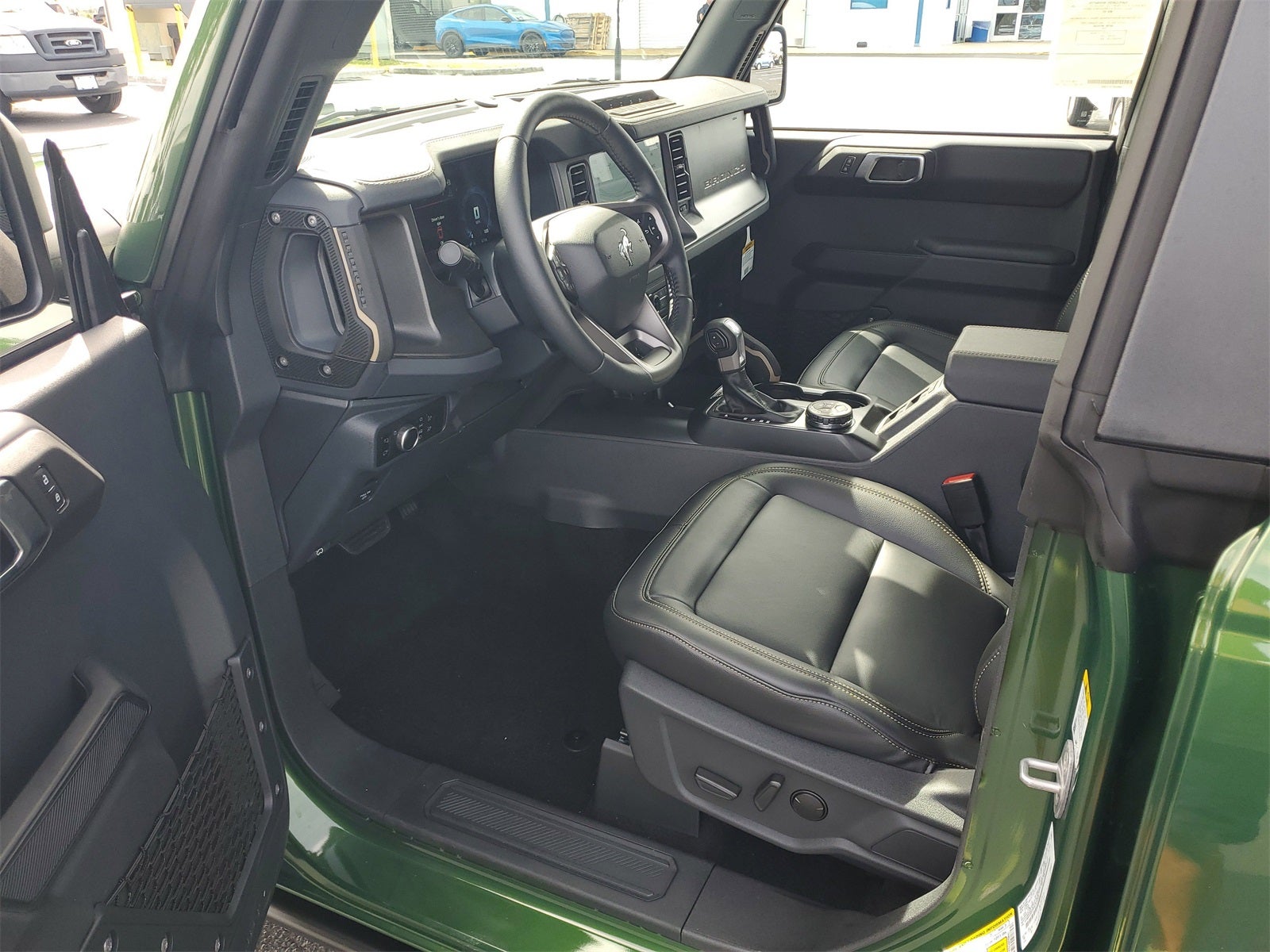 Dealer Discount of $4,825 off MSRP Bronco Badlands, 2-Door Intelligent Access w/Lock/Unlock, 360-Degree Camera, Adaptive Cruise Control, Ambient Footwell Lighting, Connected Navigation, Dr & Pass Illuminated Sliding Visor Vanity Mirrors, Dual Smart Charging USB Ports, Dual-Zone Electronic Automatic Temperature Control, Equipment Group 334A Lux Package, Evasive Steering Assist, Front Parking Sensors, Front Row Heated Seats, Information on Demand Panel, Power Outlet - Back Side of Center Floor Console, Radio: B&O Sound System by Bang & Olufsen, Rear Parking Sensors, Sideview Mirrors, Universal Garage Door Opener, Wheels: 17 Carbonized Gray-Painted Aluminum, 4-Wheel Disc Brakes, 4.7 Axle Ratio, 7 Speakers, ABS brakes, Air Conditioning, Alloy wheels, AM/FM radio: SiriusXM with 360L, AM/FM Stereo, Auto High-beam Headlights, Auto-dimming Rear-View mirror, Brake assist, Compass, Delay-off headlights, Driver door bin, Driver vanity mirror, Dual front impact airbags, Dual front side impact airbags, Electronic Stability Control, Emergency communication system: 911 Assist, Exterior Parking Camera Rear, Ford Performance Heavy-Duty Modular Front Bumper, Front anti-roll bar, Front Bucket Seats, Front Center Armrest, Front fog lights, Front reading lights, Front wheel independent suspension, Fully automatic headlights, Heated door mirrors, Heated front seats, Heated steering wheel, Illuminated entry, Integrated roll-over protection, Leather Shift Knob, Leather-Trimmed/Vinyl Bucket Seats, Low tire pressure warning, Marine Grade Vinyl Heated Bucket Seats, Occupant sensing airbag, Outside temperature display, Overhead airbag, Overhead console, Panic alarm, Passenger door bin, Passenger vanity mirror, Power door mirrors, Power steering, Power windows, Radio data system, Remote keyless entry, Security system, SiriusXM w/360L, Speed control, Split folding rear seat, Steering wheel mounted audio controls, SYNC 4, Tachometer, Telescoping steering wheel, Tilt steering wheel, Traction control, Trip computer, Variably intermittent wipers, Voltmeter, Bronco Badlands, 2-Door Intelligent Access w/Lock/Unlock, 360-Degree Camera, Adaptive Cruise Control, Ambient Footwell Lighting, Connected Navigation, Dr & Pass Illuminated Sliding Visor Vanity Mirrors, Dual Smart Charging USB Ports, Dual-Zone Electronic Automatic Temperature Control, Equipment Group 334A Lux Package, Evasive Steering Assist, Front Parking Sensors, Front Row Heated Seats, Information on Demand Panel, Power Outlet - Back Side of Center Floor Console, Radio: B&O Sound System by Bang & Olufsen, Rear Parking Sensors, Sideview Mirrors, Universal Garage Door Opener, Wheels: 17 Carbonized Gray-Painted Aluminum.