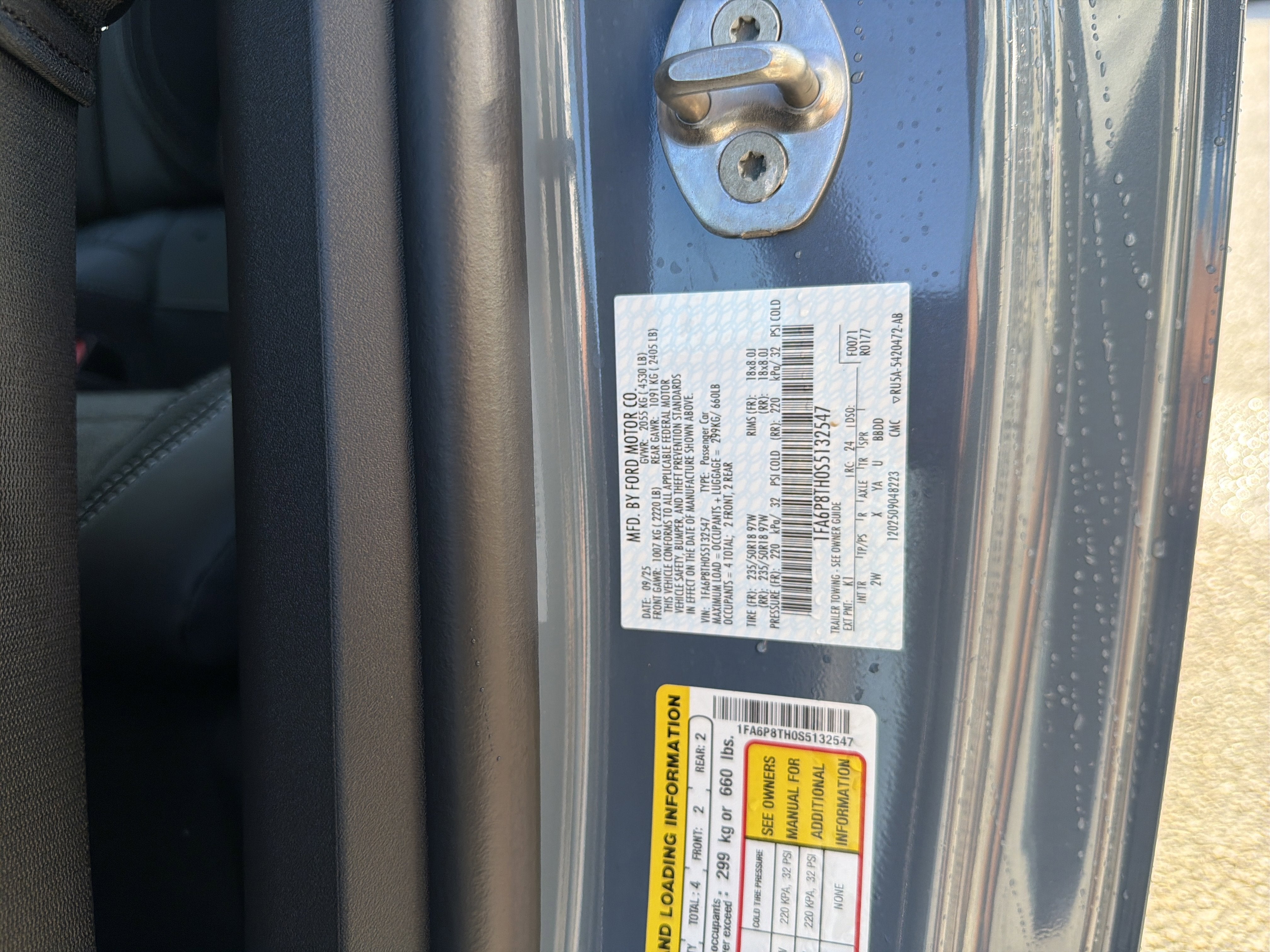 Vapor Blue Metallic 2025 Ford Mustang EcoBoost RWD 10-Speed Automatic EcoBoost 2.3L I4 GTDi DOHC Turbocharged VCT 21/32 City/Highway MPG 9-Speaker Stereo System, ABS brakes, Alloy wheels, Cloth/Vinyl Heated Bucket Seats, Compass, Electronic Stability Control, Equipment Group 101A High Package, Front dual zone A/C, Illuminated entry, Low tire pressure warning, Remote keyless entry, SiriusXM w/360L & HD Radio, Traction control. Price includes: $1000 - Bonus Cash. Exp. 02/02/2026 $2500 - Retail Customer Cash. Exp. 03/31/2026