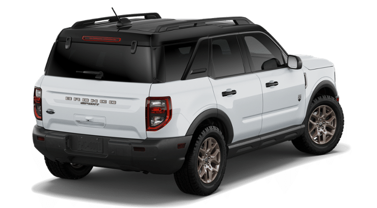 Oxford White 2026 Ford Bronco Sport Big Bend 4WD 8-Speed Automatic 1.5L EcoBoost 25/30 City/Highway MPG All Weather Floor Liners with Bronze Accents, AM/FM Stereo, Body-Color Door Handles, Bronze Badges, Bronze Package, Bronze Vent Fender, Cargo Mat with Bronze Accents, Cloth with Easy-to-Clean Front Bucket Seats, Ebony Black Grille w/Bronze BRONCO Lettering, Equipment Group 200A Standard Package, Ford Connectivity Package (1-Year Included), Front Driver/Passenger Seat Back Map Pockets, Painted Shadow Black Roof, Premium Trimmed Front Sport Contour Bucket Seats, Premium Wrapped Steering Wheel, SiriusXM with 360L, SYNC 4 with Enhanced Voice Recognition, Wheels: 17 Carbonized Gray Painted Aluminum, Wheels: 17 Sinister Bronze-Painted Aluminum.