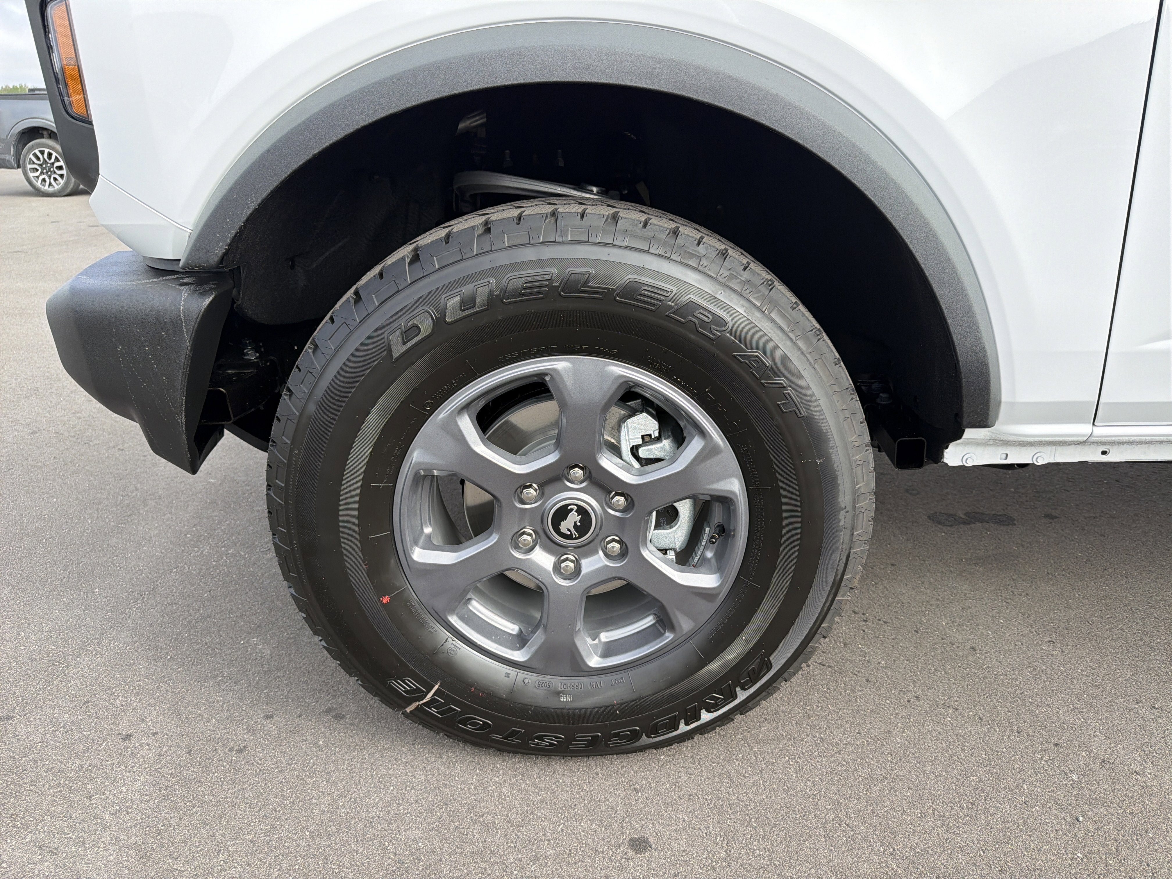 Oxford White 2026 Ford Bronco Big Bend 4WD 10-Speed Automatic 2.3L EcoBoost I-4 2-Door Intelligent Access with Lock/Unlock, AM/FM Stereo, Ambient Footwell Lighting, Cloth Bucket Seats, Connected Navigation, Driver and Front Passenger Illuminated Sliding Visor Vanity Mirrors, Dual Smart Charging USB Ports, Dual-Zone Electronic Automatic Temperature Control, Equipment Group 222A Mid Package, Ford Connectivity Package (1-Year Included), Front Row Heated Seats, Pro Power Onboard - 400W, Rear Parking Sensors, SiriusXM with 360L, SYNC 4, Wheels: 17 Carbonized Gray-Painted Aluminum. Price includes: $750 - Retail Customer Cash. Exp. 04/30/2026