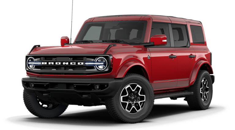 Ruby Red Metallic Tinted Clearcoat 2026 Ford Bronco Outer Banks 4WD 10-Speed Automatic 2.7L EcoBoost V6 18 Bright Machined Aluminum Wheels, 3.73 Axle Ratio, 360-Degree Camera, Adaptive Cruise Control, Equipment Group 314A Lux Package, Evasive Steering Assist, Front Parking Sensors, Heated Leather-Trimmed/Vinyl Bucket Seats, Information on Demand Panel, Radio: B&O Sound System by Bang and Olufsen, Sideview Mirrors, Trailer Tow Package.