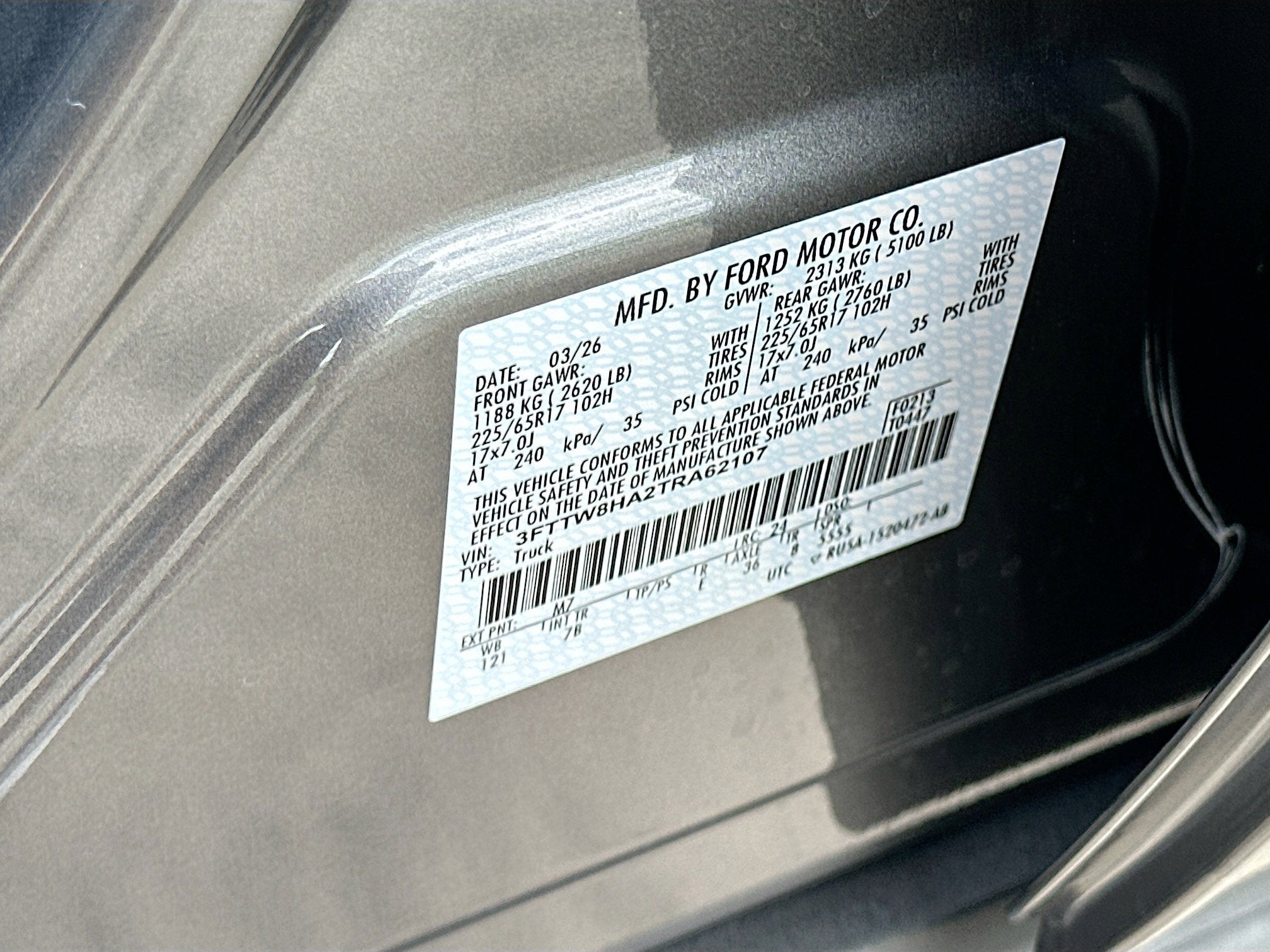 - Front Tire Size: P225/65HR17