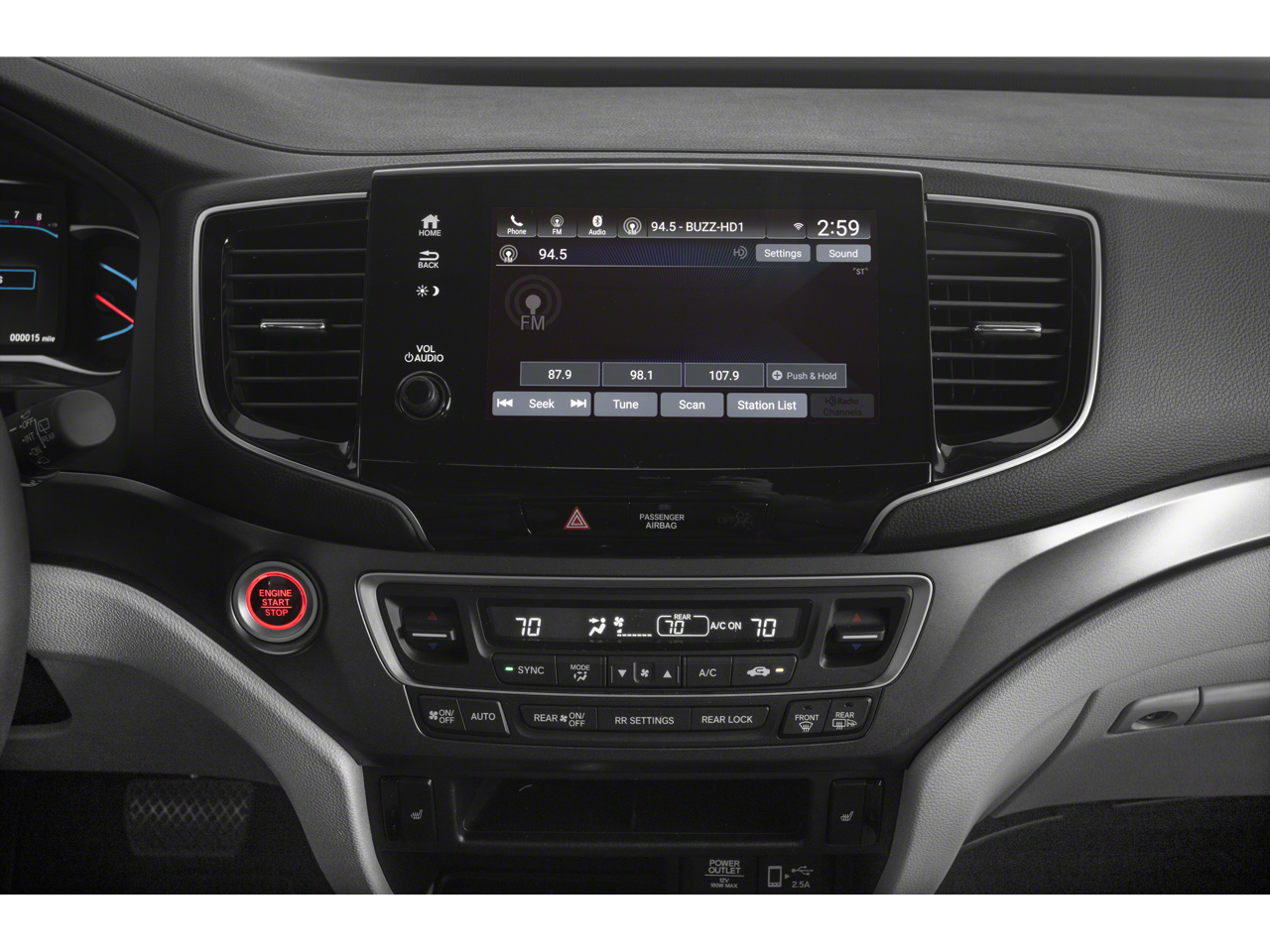 - Radio: 215-Watt Audio System -inc: 7 speakers, subwoofer, 8" display audio w/high-resolution electrostatic touch-screen and customizable feature settings, 2.5-amp USB smartphone/audio interface front console (1 port), Bluetooth® HandsFreeLink, Bluetooth® streaming audio, MP3/auxiliary input jack, Radio Data System (RDS), Speed-Sensitive Volume Compensation (SVC), 2.5-amp USB charging port in center console (1 port) and 2nd row (2 ports), HondaLink, CabinControl remote compatibility, Apple CarPlay integration, Android Auto integration, SMS text message function (Compatible w/select phones w/Bluetooth®, Your wireless carrier's rate plans apply, State or local laws may limit use of texting feature, Only use texting feature when conditions allow you to do so safely.), SiriusXM radio (SiriusXM services require a subscription after any trial period, If you decide to continue your SiriusXM service at the end of your trial subscription, the plan you choose will automatically renew and bill at then-current rates until you call SiriusXM at 1-866-635-2349 to cancel, See our customer agreement for complete terms at www.siriusxm.com, Fees and programming subject to change, Available in the 48 contiguous United States and D.C, SiriusXM and all related marks and logos are trademarks of SiriusXM Radio Inc, and HD Radio