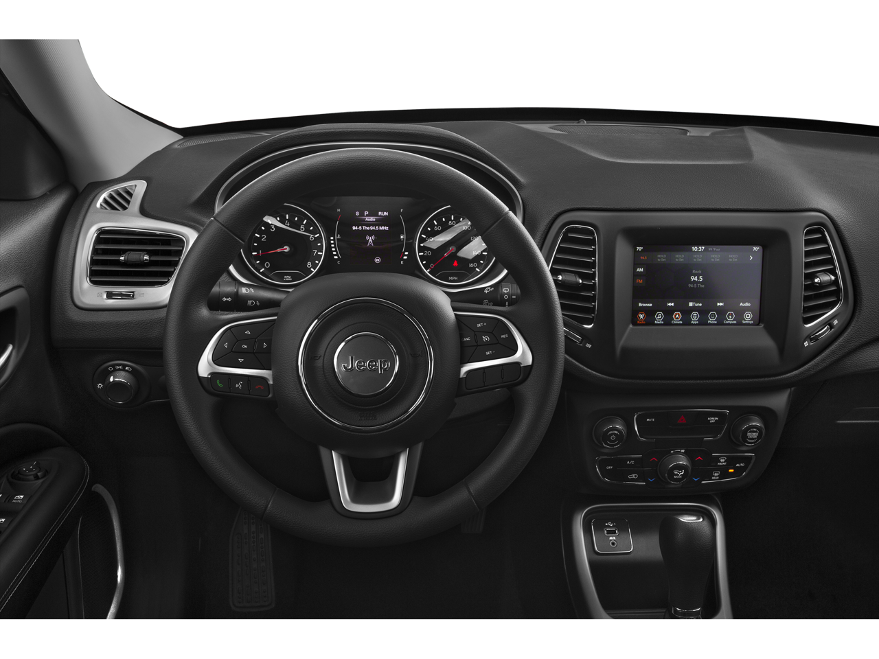 Inside, the Compass Sport offers a comfortable and well-equipped cabin. Dual-zone automatic climate control ensures everyone stays comfortable, while the Uconnect 4 infotainment system with 7-inch display keeps you connected and entertained. Apple CarPlay and Android Auto integration allow you to seamlessly integrate your smartphone, and the 6-speaker audio system delivers a premium listening experience.