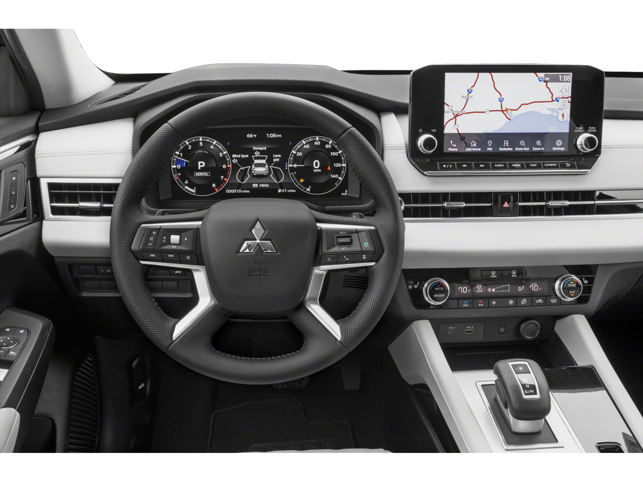 - Radio: AM/FM 9.0" Navigation w/Smartphone Link -inc: 6 speakers, Apple CarPlay, Google Android Auto, SXM all-access and SXM traffic and travel link w/90-day subscription, Mitsubishi Connect, HD Radio, smartphone wireless charger, Bluetooth® wireless technology, steering wheel controls for phone, audio and voice recognition and USB ports