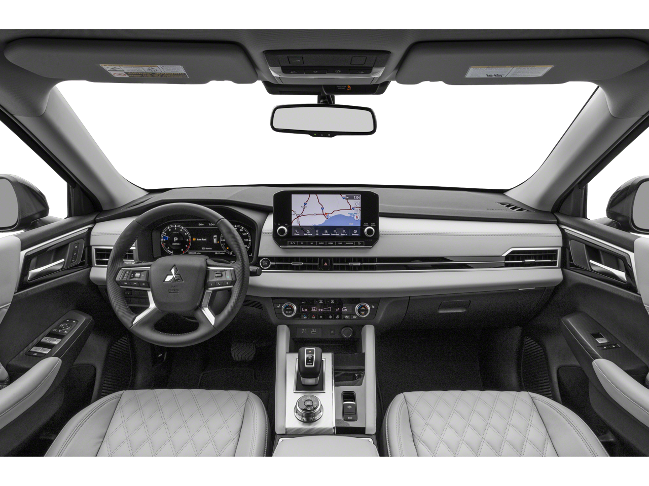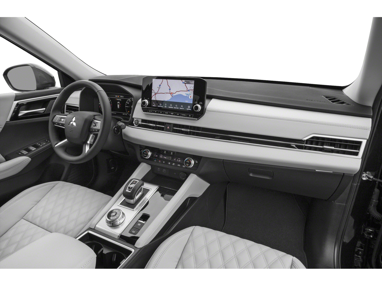 3rd row seats: split-bench, 4-Wheel Disc Brakes, 6 Speakers, ABS brakes, Air Conditioning, Alloy wheels, AM/FM radio: SiriusXM, Android Auto & Apple CarPlay, Auto High-beam Headlights, Auto-dimming Rear-View mirror, Automatic temperature control, Axle Ratio: 5.694, Brake assist, Bumpers: body-color, Driver door bin, Driver vanity mirror, Dual front impact airbags, Dual front side impact airbags, Electronic Stability Control, Emergency communication system: Mitsubishi Connect w/ 24-month trial, Four wheel independent suspension, Front anti-roll bar, Front Bucket Seats, Front Center Armrest w/Storage, Front dual zone A/C, Front fog lights, Front reading lights, Fully automatic headlights, Heated door mirrors, Heated Front Bucket Seats, Heated front seats, Illuminated entry, Knee airbag, Leather Seat Trim, Leather Shift Knob, Leather steering wheel, Low tire pressure warning, Memory seat, Navigation system: Powered by TOMTOM, Occupant sensing airbag, Outside temperature display, Overhead airbag, Overhead console, Panic alarm, Passenger door bin, Passenger vanity mirror, Power door mirrors, Power driver seat, Power Liftgate, Power passenger seat, Power steering, Power windows, Radio data system, Radio: AM/FM 9.0 Navigation w/Smartphone Link, Rain sensing wipers, Rear air conditioning, Rear anti-roll bar, Rear seat center armrest, Rear side impact airbag, Rear window defroster, Rear window wiper, Reclining 3rd row seat, Remote keyless entry, Roof rack: rails only, Security system, Speed control, Speed-Sensitive Wipers, Split folding rear seat, Spoiler, Steering wheel mounted audio controls, Tachometer, Telescoping steering wheel, Tilt steering wheel, Traction control, Trip computer, Turn signal indicator mirrors, Variably intermittent wipers, Wheels: 20 x 8J Two-Tone Alloy.