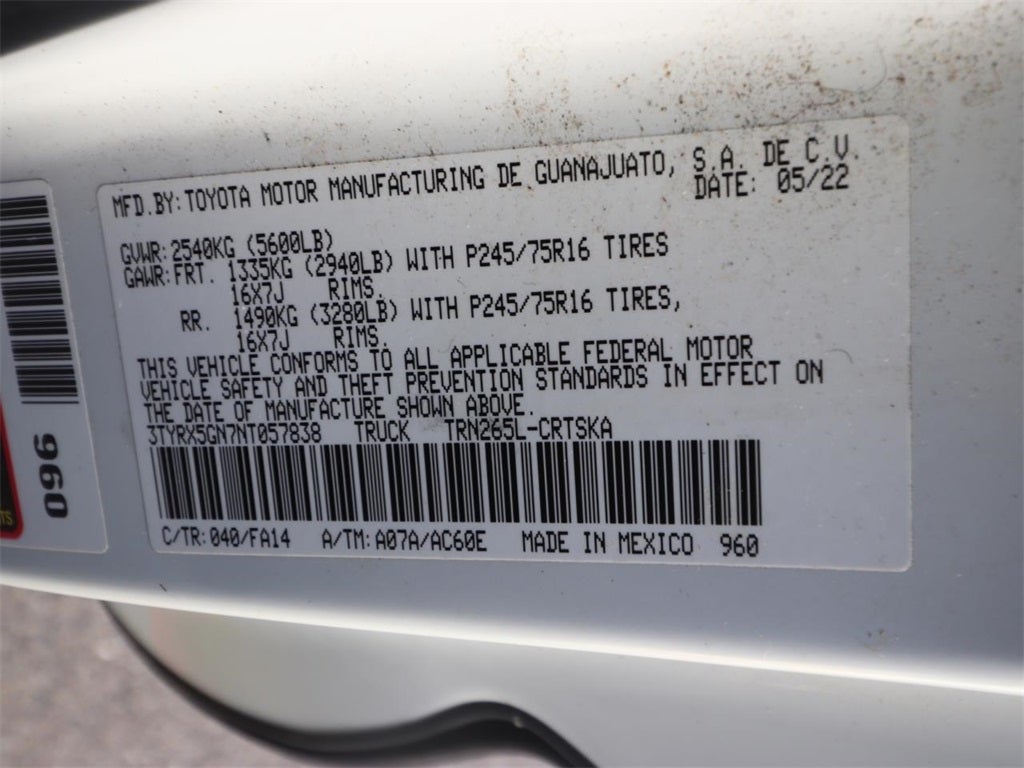 - Vehicle Name: Toyota Tacoma 2WD