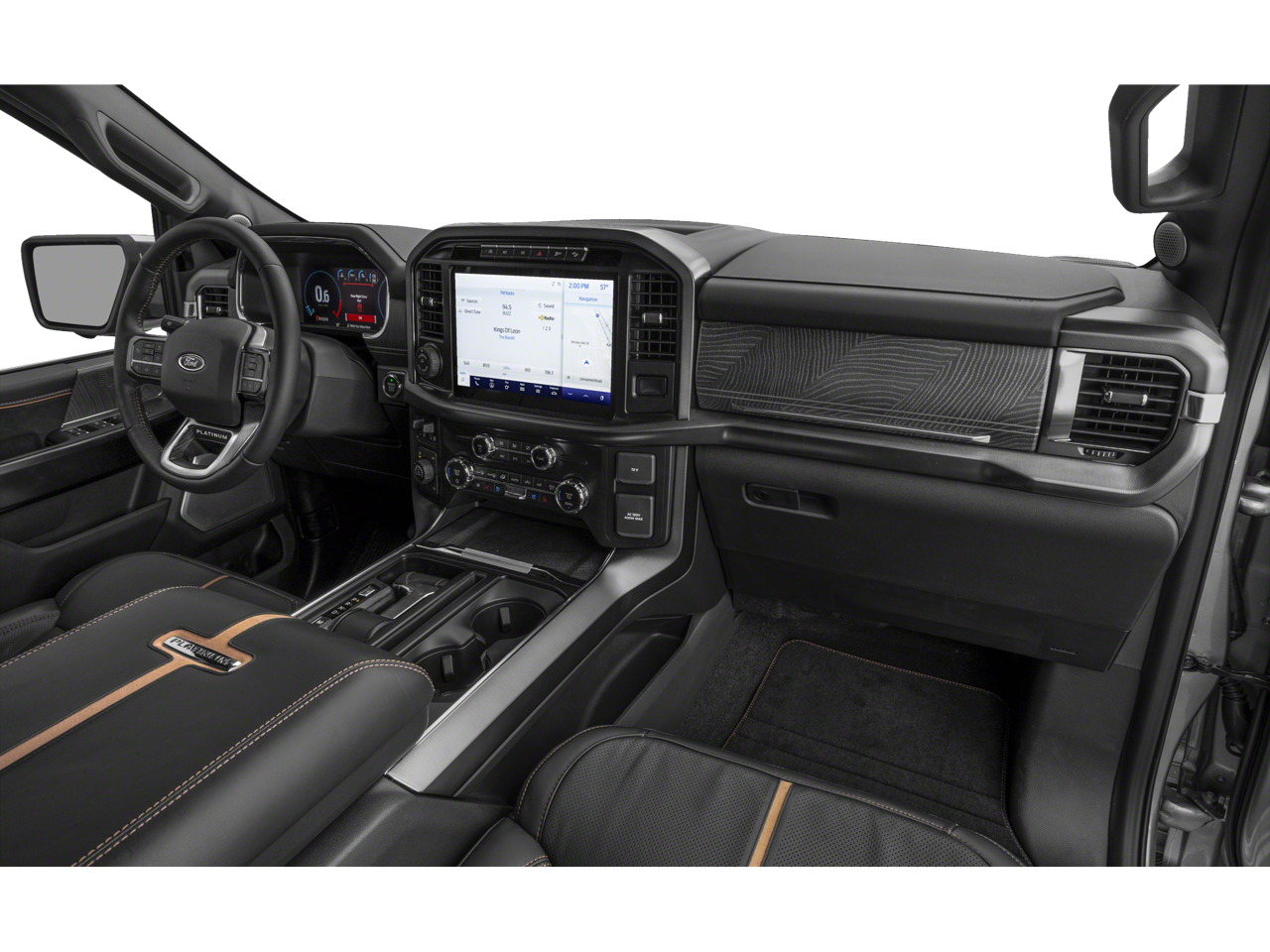 3.5L PowerBoost Full-Hybrid V6, 4WD, 20 Polished Aluminum Wheels, 360 Degree Camera, 4-Wheel Disc Brakes, 8 Speakers, ABS brakes, Active Park Assist 2.0, Active Park Assist 2.0 Removal, Adjustable pedals, Air Conditioning, Alloy wheels, AM/FM radio: SiriusXM with 360L, Auto High-beam Headlights, Auto Start-Stop Removal (DISC), Auto tilt-away steering wheel, Auto-dimming door mirrors, Auto-dimming Rear-View mirror, Automatic temperature control, Bed Utility Package, BoxLink, Brake assist, Bumpers: body-color, Center High-Mounted Stop Lamp CHMSL Camera Removal, Class IV Trailer Hitch Receiver, Compass, Delay-off headlights, Driver door bin, Driver vanity mirror, Dual front impact airbags, Dual front side impact airbags, Electronic Stability Control, Emergency communication system: SYNC 4 911 Assist, Equipment Group 701A High, Exterior Parking Camera Rear, Ford BlueCruise 1.0, Front anti-roll bar, Front Bucket Seats, Front Center Armrest, Front dual zone A/C, Front fog lights, Front reading lights, Front wheel independent suspension, Fully automatic headlights, Garage door transmitter, Heated door mirrors, Heated front seats, Heated rear seats, Heated steering wheel, Illuminated entry, Inclination/Intrusion Sensor Removal, Integrated Trailer Brake Controller, Interior Work Surface, LED Box Lighting, LED Sideview Mirror Spotlights, Low tire pressure warning, Memory seat, Multicontour Seats w/Active Motion Removal, Occupant sensing airbag, Outside temperature display, Overhead airbag, Overhead console, Panic alarm, Passenger door bin, Passenger vanity mirror, Pedal memory, Power door mirrors, Power driver seat, Power passenger seat, Power steering, Power Tailgate, Power windows, Pro Trailer Backup Assist & Pro Trailer Hitch Assist, Radio data system, Radio: B&O Sound System by Bang & Olufsen, Radio: B&O Unleashed Sound System by Bang & Olufsen, Rain sensing wipers, Rear reading lights, Rear seat center armrest, Rear step bumper, Rear window defroster, Remote keyless entry, Security system, Speed control, Speed-sensing steering, Split folding rear seat, Steering Wheel Heat Removal (DISC), Steering wheel memory, Steering wheel mounted audio controls, SYNC 4 w/Enhanced Voice Recognition, Tachometer, Tailgate Step w/Tailgate Work Surface, Telescoping steering wheel, Tilt steering wheel, Traction control, Trailer Tow Package, Trip computer, Turn signal indicator mirrors, Twin Panel Moonroof, Unique Multi-Contour Leather Bucket Seats, Variably intermittent wipers, Ventilated front seats, Voltmeter, 3.5L PowerBoost Full-Hybrid V6, 4WD.